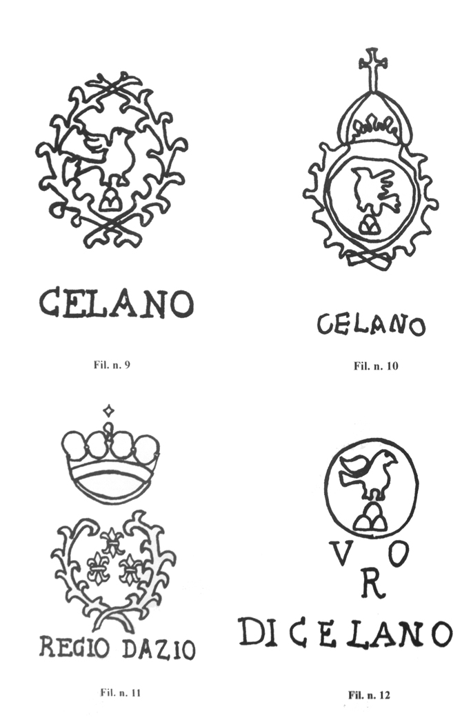 Alcuni esempi di filigrane impresse sulla carta prodotta a Celano